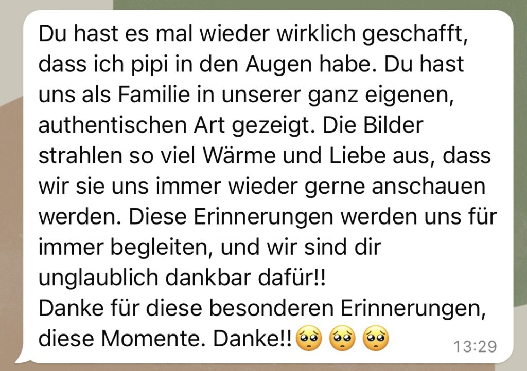Genau das möchte ich mit meiner Fotografie bewirken, Euch zeigen welche Liebe ihr säht, welche Schöpferkraft ihr habt und wie wunderbar und leicht es sein darf, Erinnerungen zu bewahren.